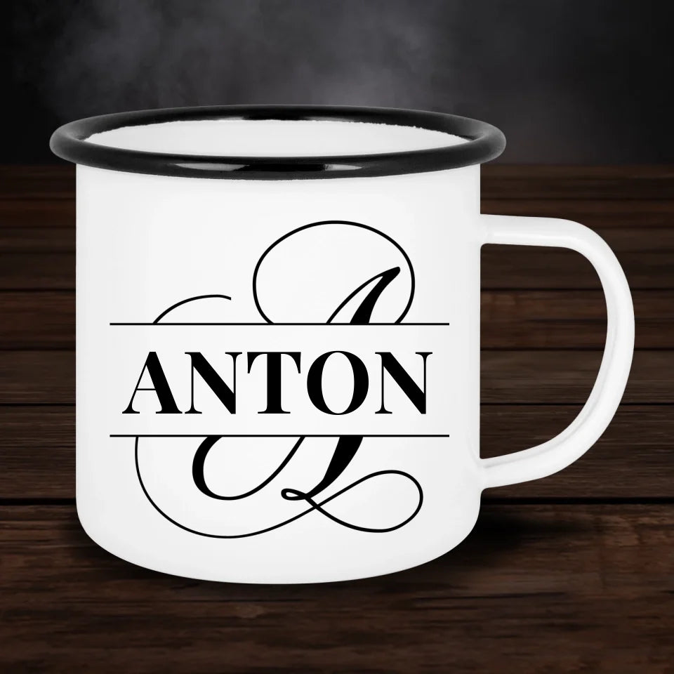 Personalisierte Emaille-Tasse mit Serif Buchstabe & Name