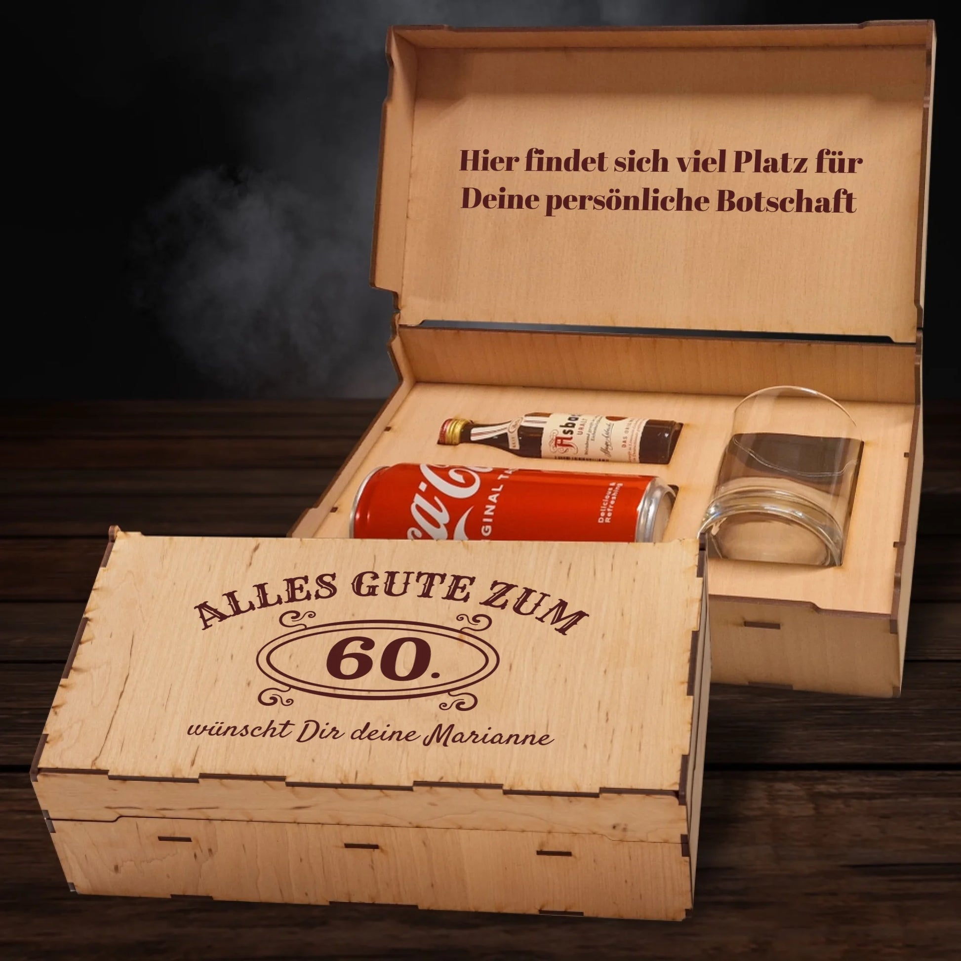 Die personalisierte Asbach Geschenkbox ist das perfekte Geschenk, um jeden Geburtstag unvergesslich zu machen. Diese hochwertige Holzbox aus edlem HDF-Holz wird individuell mit deinem Wunschmotiv graviert und kombiniert Eleganz mit Funktionalität – ideal, um den Tag zu etwas Besonderem zu machen.