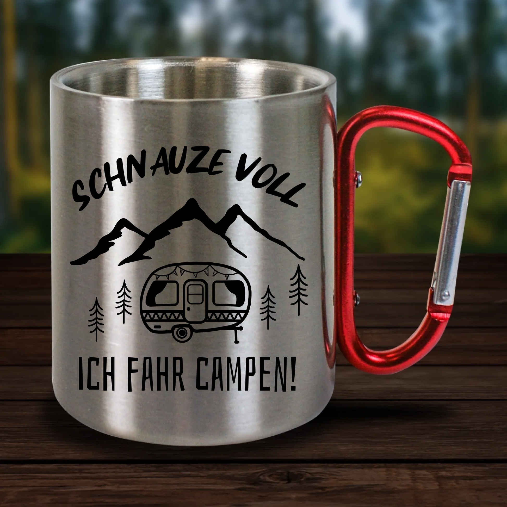 Personalisierte Karabiner Tasse - Geschenk für Camper - Schnauze voll, ich fahr campen